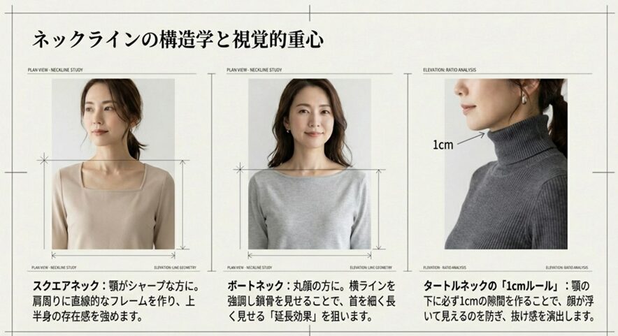 ネックラインの構造学:首元の数センチが全身の印象を変える