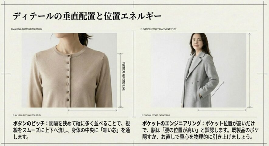 ディテールの垂直配置:ボタンとポケットのエンジニアリング