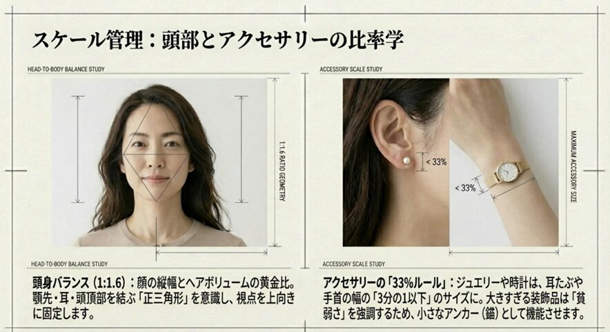 スケール管理:アクセサリーとヘアスタイルの比率学