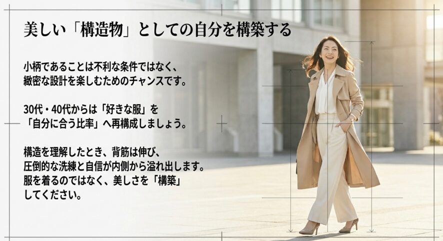 シルエットの幾何学:小柄女性が「形」で負けないための3大ライン