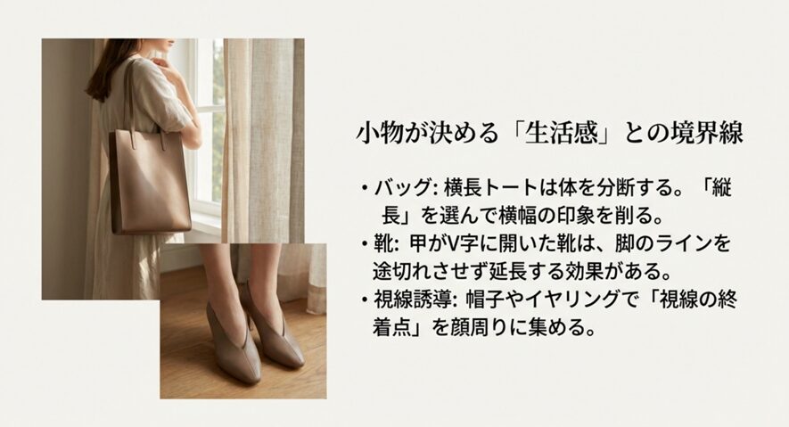 小物の選び方が、「生活感」と「ファッション」の境界線を決定します。