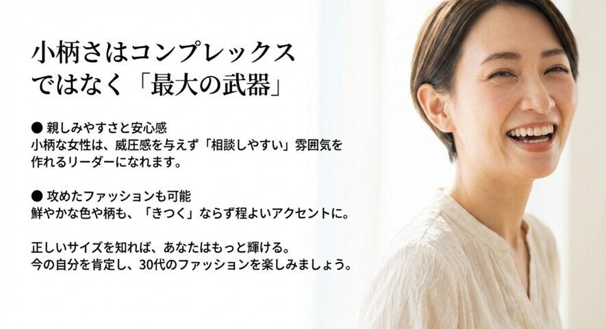 身長が低いことを「隠すべき欠点」だと考えていませんか。しかし、30代からの小柄さは、実は大きなアドバンテージになります。
